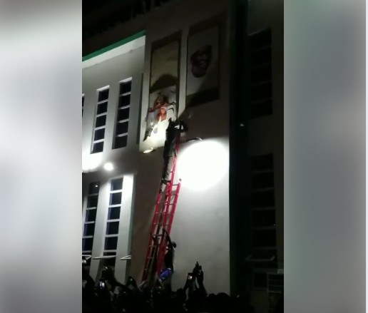 The supporters of governor Ganduje used ladders to climb the coronation hall in the government house to remove the portrait/picture of the monarch to show their displeasure with him.