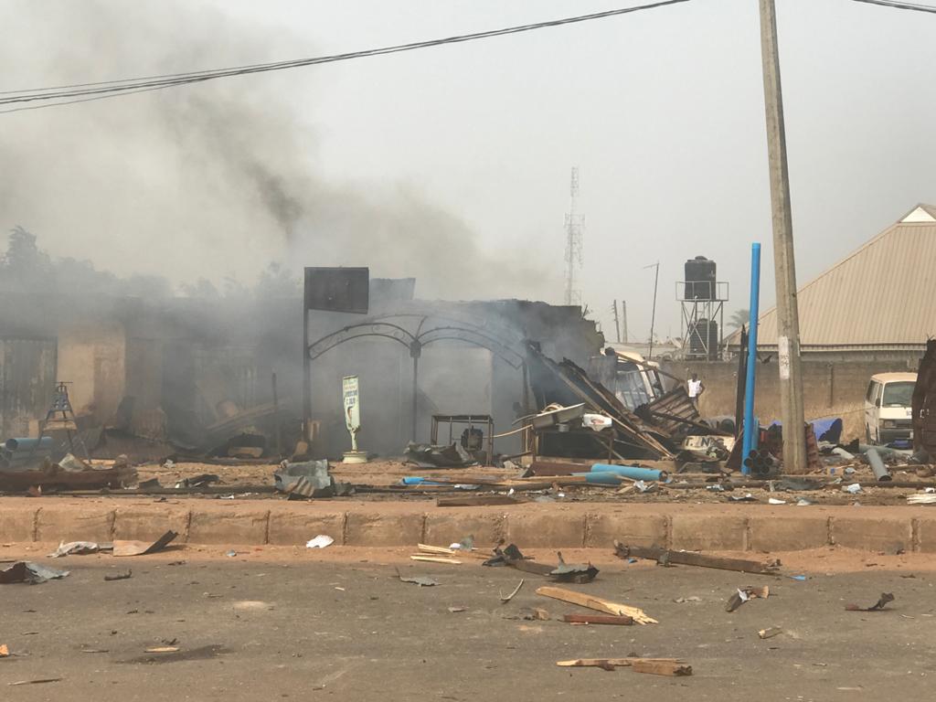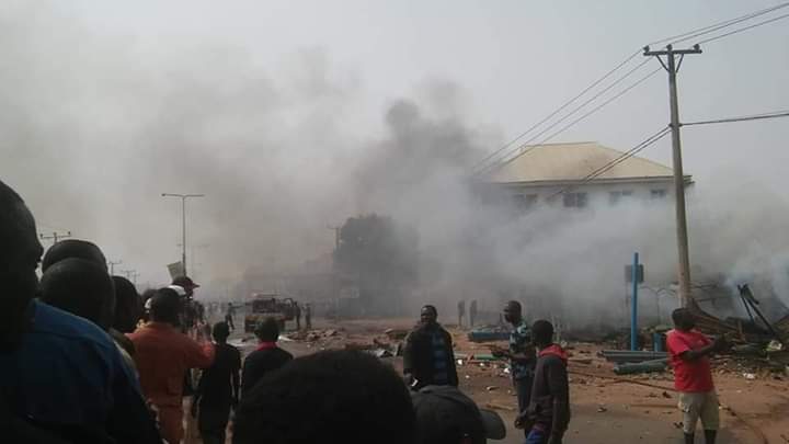 As at the time of filing this report, the shop where the gas is being sold and other shops are up in flames.