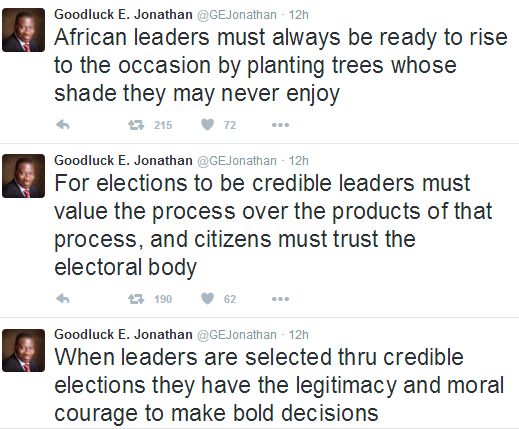 Former President Goodluck Jonathan who is presently in the US, spoke on the need for strong democratic institutions and credible elections at the City of Newark in New Jersey yesterday April 21st. See tweets of what of some of the things he said during his presentation after the cut..