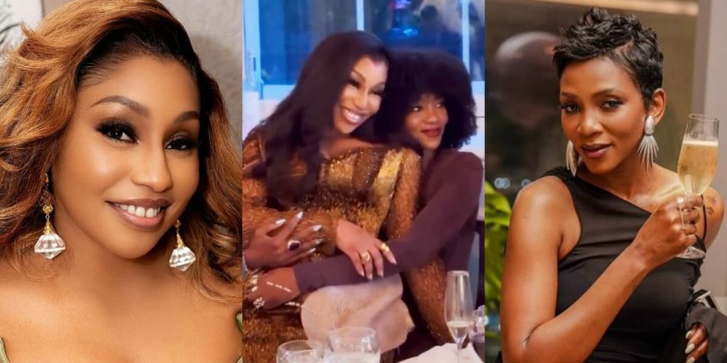 The clip, which has gone viral, shows Rita Dominic sitting comfortably on Genevieve Nnaji’s lap as the latter holds her closely from behind, sparking admiration and excitement among fans.