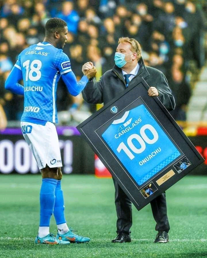 Paul Onuachu was celebrated by Belgian outfit KRC Genk on Wednesday night after making his 100th appearance for the club, reports Complete sports.com.
