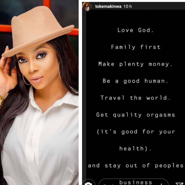 Toke Makinwa shared these tips on how to stay healthy via her Instastories.