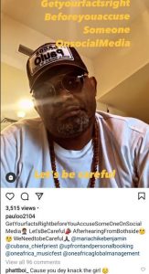 Tagging Cubana Chief Priest, Paulo on his Instagram page urged everyone to get their facts right before accusing anyone on social media.