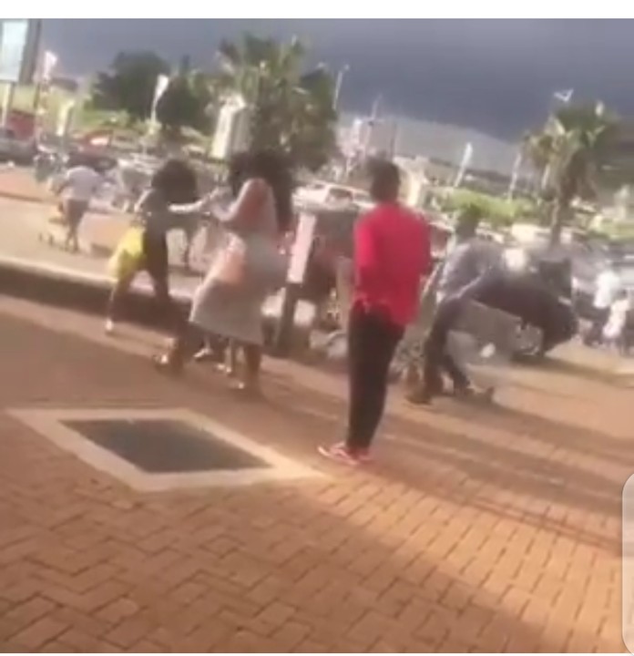Here is a viral video showing the moment a side chick was beaten to pulp at a mall in front of boyfriend.