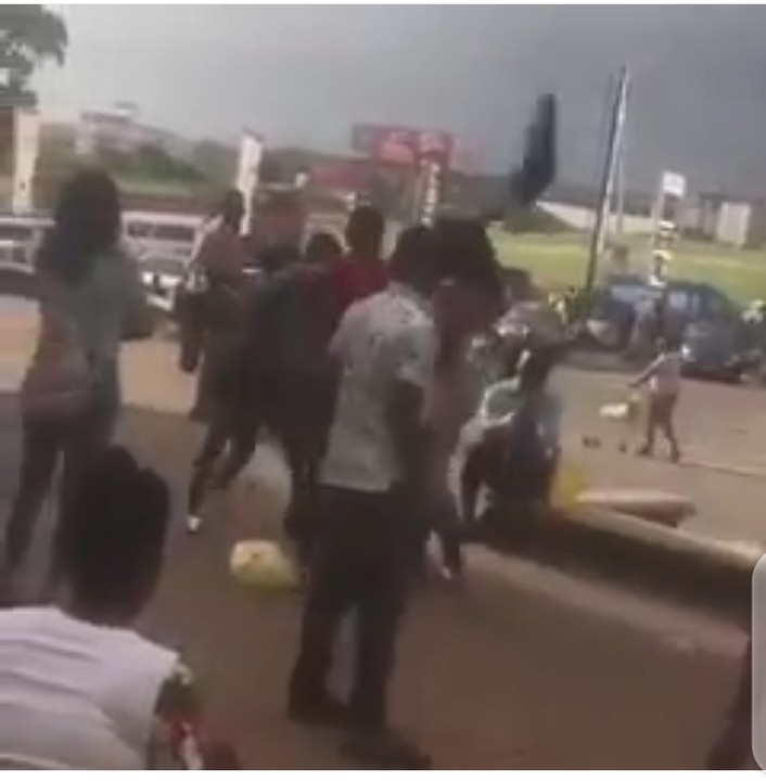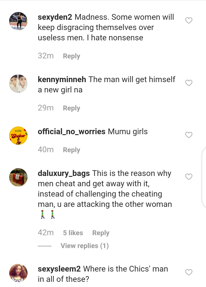 In the video making rounds online the main chick beats up side chick with her own wig after she caught her at the mall with her boyfriend.