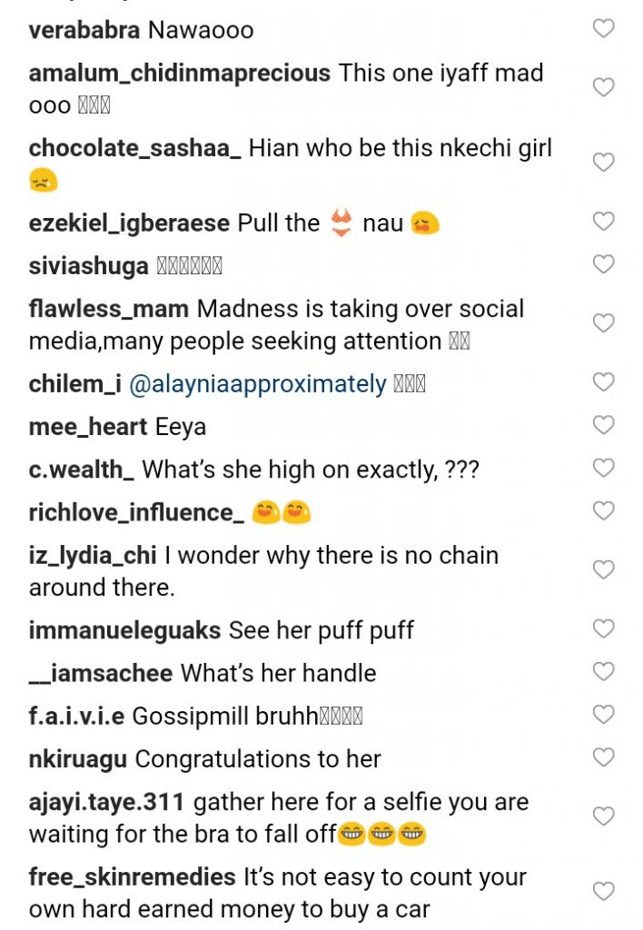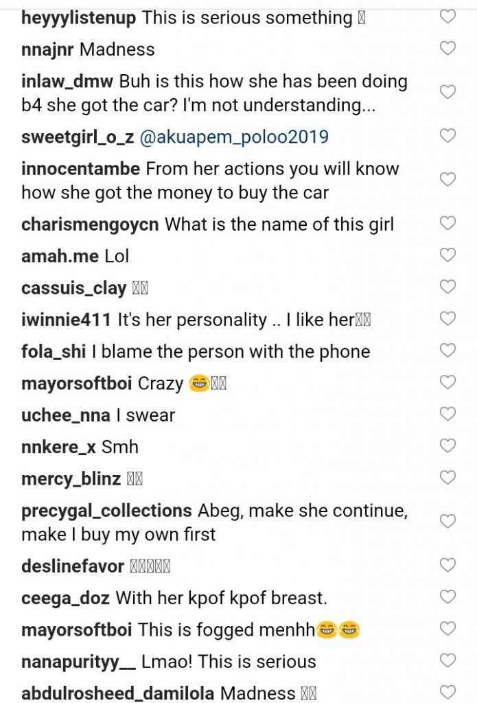 The way the girl dances and showing off her car one will think she is the first ever woman to use her own money to buy a Car!