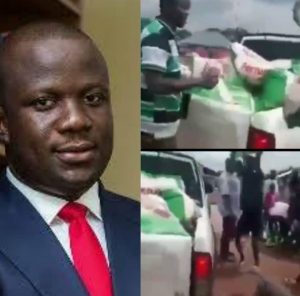 A video has surfaced online showing the moment youths of Damongo town in Ghana on Monday, July 19, refused the bags of rice sent to them by NPP politician, Samuel Abu Jinapors, who represents their constituency in the country’s parliament.