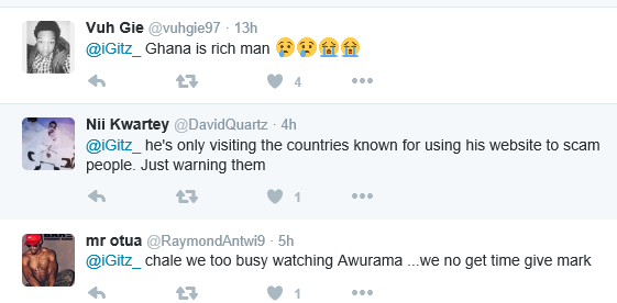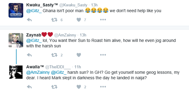 A Kenyan user made fun of Ghanaians saying that they must be hurt that Facebook founder, Mark Zuckerberg skipped their country to visit Kenya after he left Nigeria. Ghanaians didn’t find it funny.