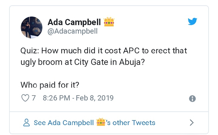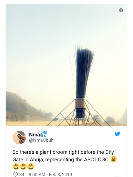 Nigerians have taken to social media to rant over the construction of a giant broom in front of the Abuja City Gate.