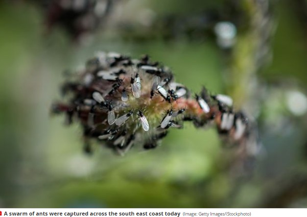 “The radar is actually picking up a swarm of flying ants across the southeast. “During the summer ants can take to the skies in a mass emergence usually on warm, humid and windless days flying ant day.”