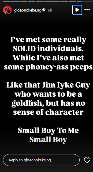 “I’ve met some really SOLID individuals. While I’ve also met some phoney-ass peeps Like that Jim Iyke Guy who wants to be a goldfish, but has no