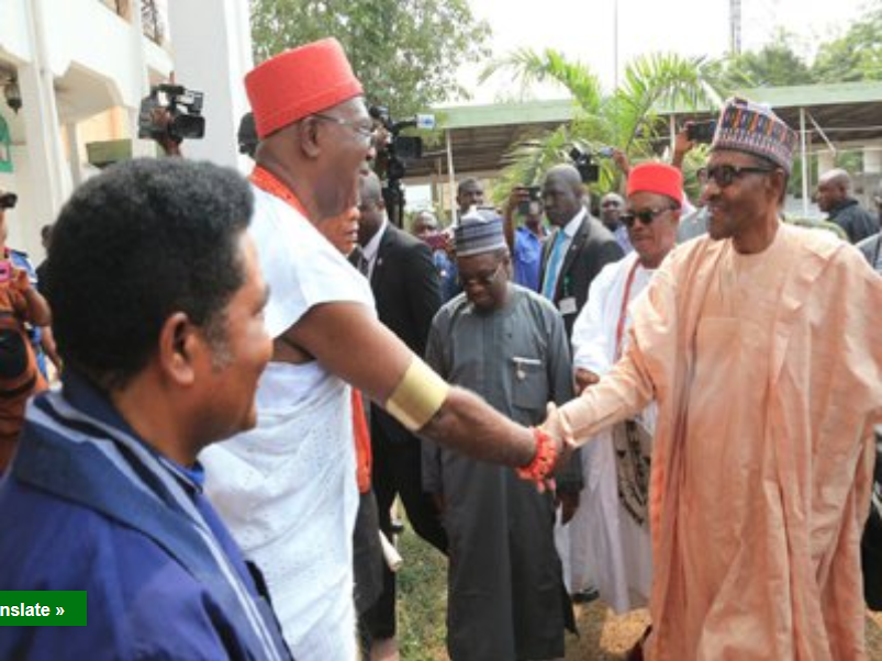 The first port of call for the President and his entourage, comprising Lagos State Governor Akinwunmi Ambode and some ministers, were the Obi of Onitsha’s palace, where Igwe Achebe, received them in the company of members of his cabinet.