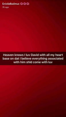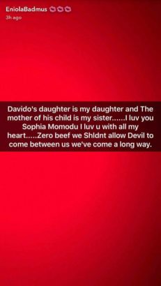 Nollywood actress, Eniola Badmus who had a social media face-off with Davido’s baby Mama , Sophia Momodu few days ago over food, has squashed her beef with the mother of one.Eniola in her ‘Go and Sin no More’ Snapchat posts, recalled the beautiful moments she had with Sophia Momodu, said they shouldn’t allow the devil come between them. Here’s her Snapchat posts;