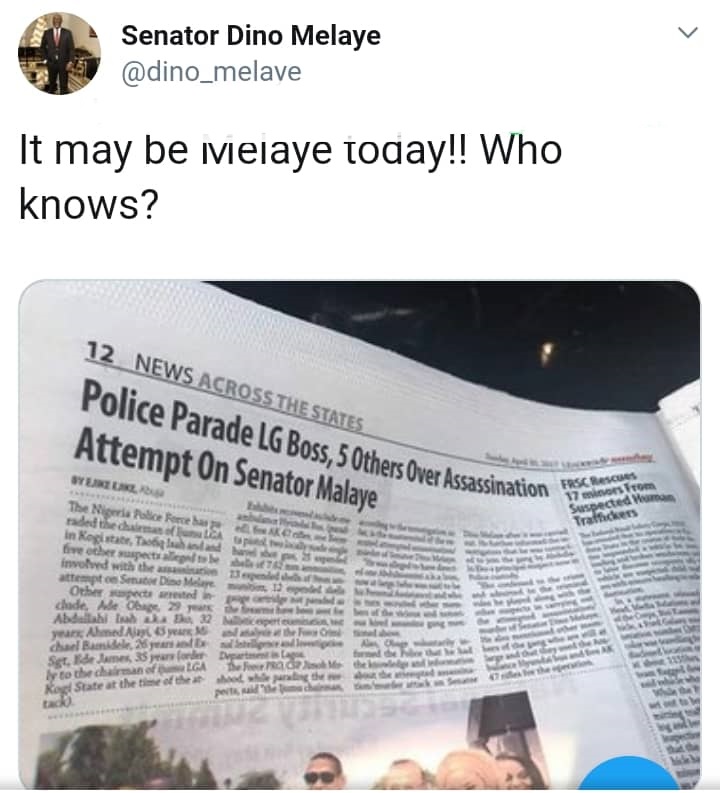 “It may be Melaye today!! Who knows?” – Senator Dino Melaye says.