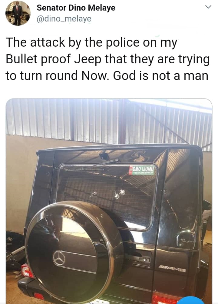 ” The attack by the police on my Bullet proof Jeep that they are trying to turn round Now. God is not a man”