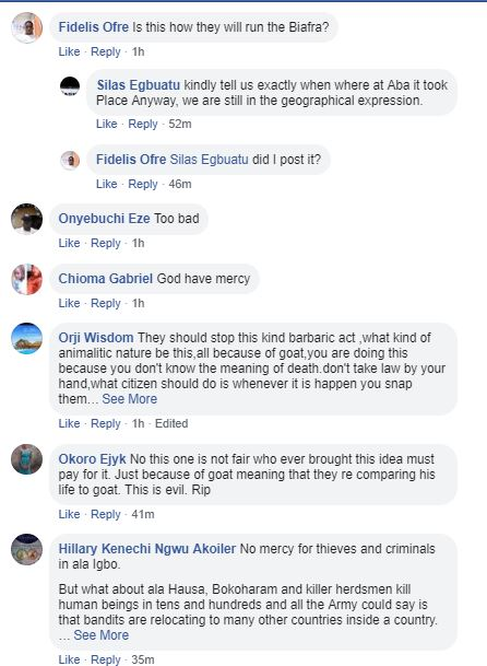 Jungle justice in Biafra land,a man burnt to death for stealing goat in Aba.