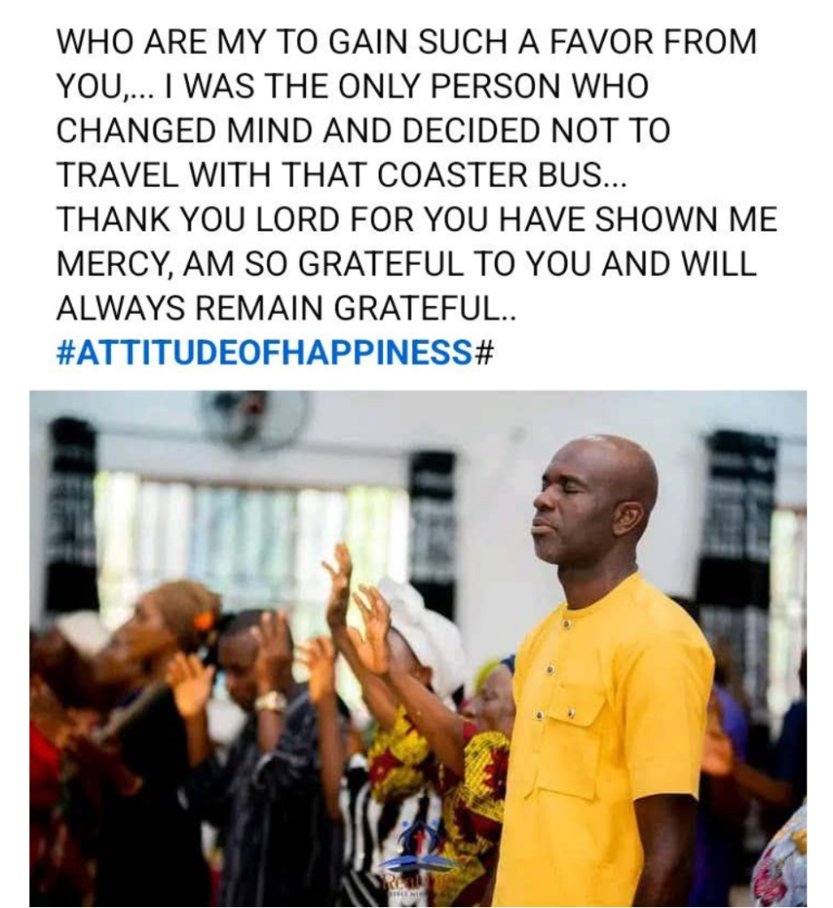 According to him, God instructed him to get down from the bus and he decided not to embark on that journey.