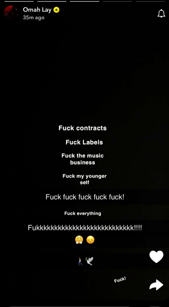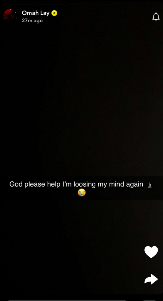 Singer Omah Lay has sparked concern among fans after going on a rant on Snapchat.