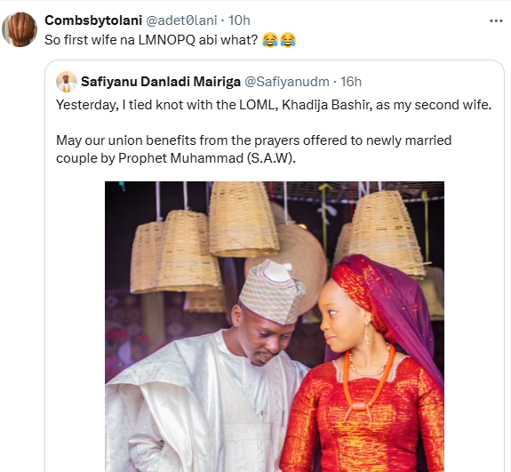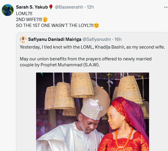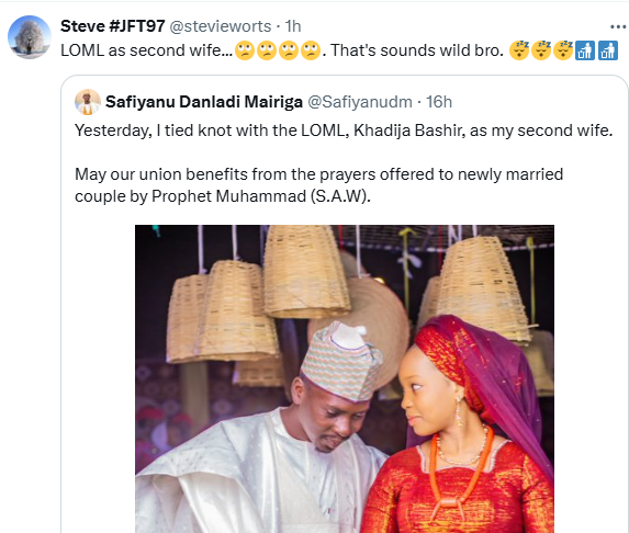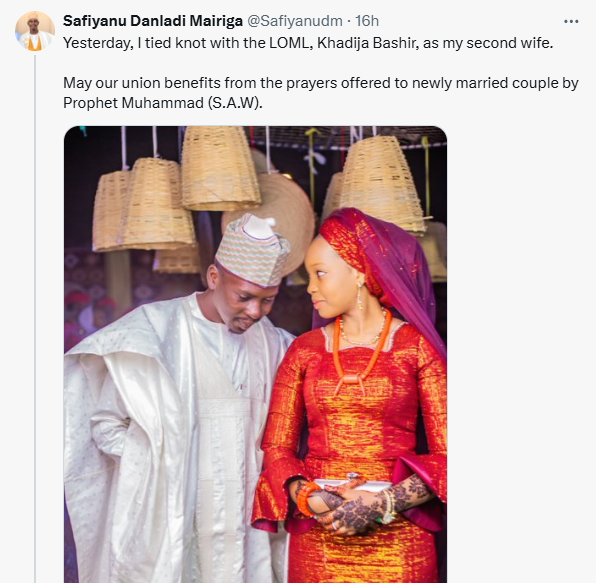“Yesterday, I tied the knot with the LOML, Khadija Bashir, as my second wife. May our union benefit from the prayers offered to newly married couples by Prophet Muhammad (S.A.W),” he wrote.
