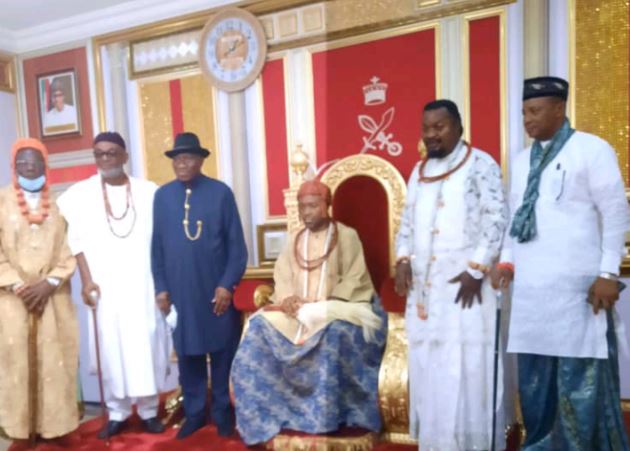 Newly crowned Olu of Warri, His Royal Majesty, Ogiame Atuwaste lll, received Ex-Nigerian President, Goodluck Jonathan at his palace in Warri South council area of Delta state.