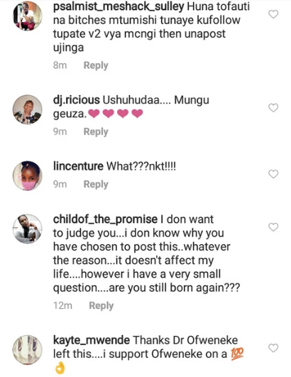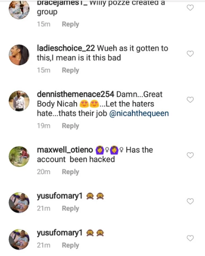 The photo led to a heated exchange between Nicah the Queen and some of her followers before it was eventually deleted. Here is a screenshot of some comments on the photo below;