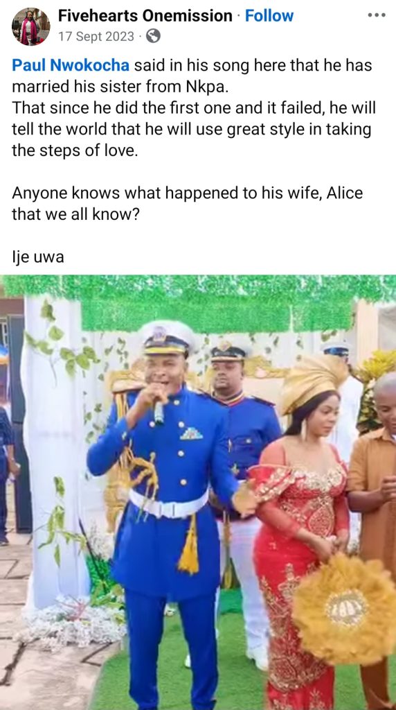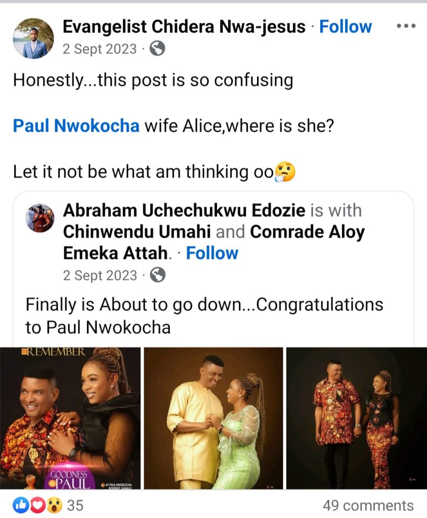 Paul Nwokocha married a woman named Goodness in September 2023 just one month after his marriage to his first wife, Alice, ended.