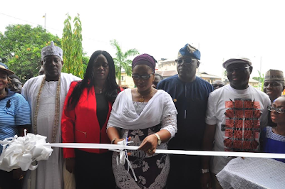 Representative of the Lagos State Governor and Commissioner for Youth and Social Development, Pharm. (Mrs.) Uzamat Akinbile-Yusuf seen cutting the tape to commission Blocks of Classrooms at the Methodist Primary School in Apapa Local Government built by the Lagos State Government, on Monday, May 16, 2016. With her were Commissioner for Local Government & Community Affairs, Hon. Muslim Folami; Commissioner for Housing, Prince Gbolahan Lawal; Executive Secretary, Apapa Local Government, Hon. Bolaji Dada and Ojora of Ijora, Oba Abdulfatai Oyeyinka Ojora….