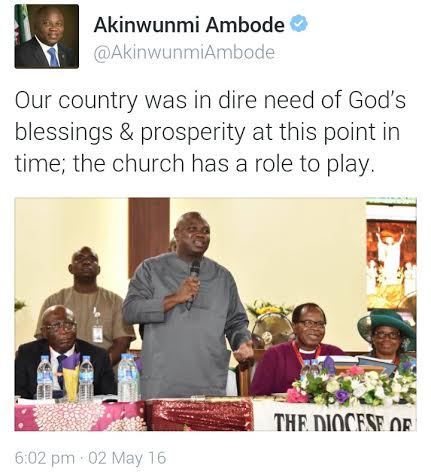 Gov. Ambode tweets on the church having a role to play and gets interesting replies