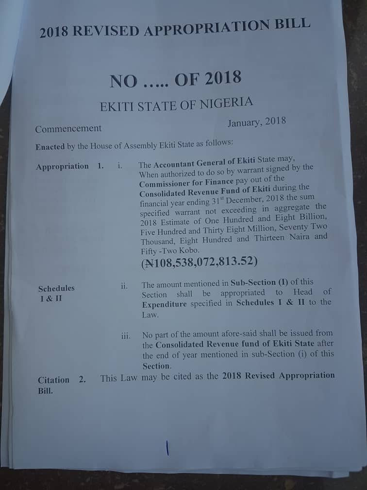 In a fraudulent move barely a month to the end of his administration, Ekiti State Governor Ayodele Fayose, has forwarded an appropriation bill of N9,926,527,772.86 (Nine billion, nine hundred and twenty-six million, five hundred and twenty seven thousand, seven hundred and seventy naira, eighty six kobo) to the State House of Assembly for approval.