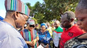 Governor Samuel Ortom and his wife, Dr Eunice Ortom on Sunday paid a visit to popular PDP Folk Singer, Gabon Akuhe to commiserate with him over the tragic accident at his Naka residence.