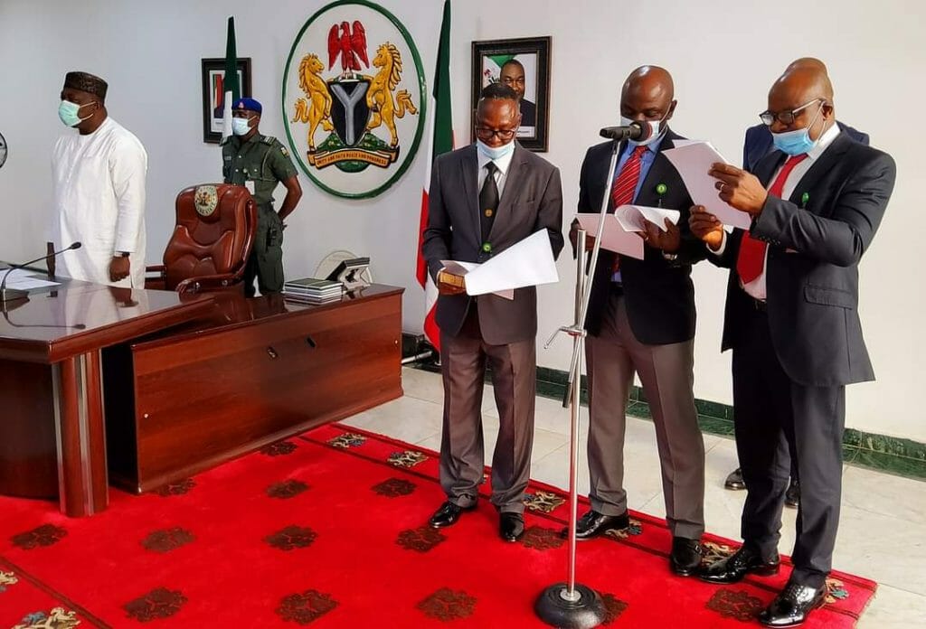 Governor Ifeanyi #Ugwuanyi of #Enugu State, on Wednesday, inaugurated the newly reconstituted Enugu State Judicial Service Commission, after swearing in Barr. Ben Chukwuemeka Ezeugwu, Mr. Ifeanyi Emma Jonathan-Ogbu and Mr. Emmanuel James Chiezue Ugwu, as members.
