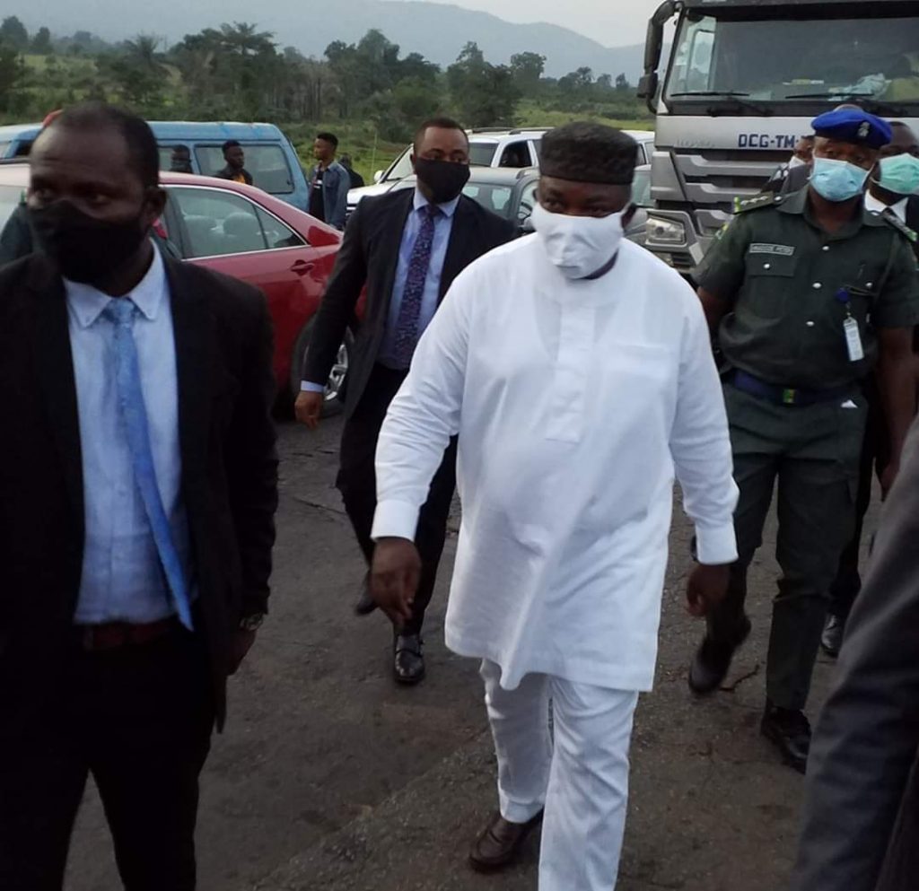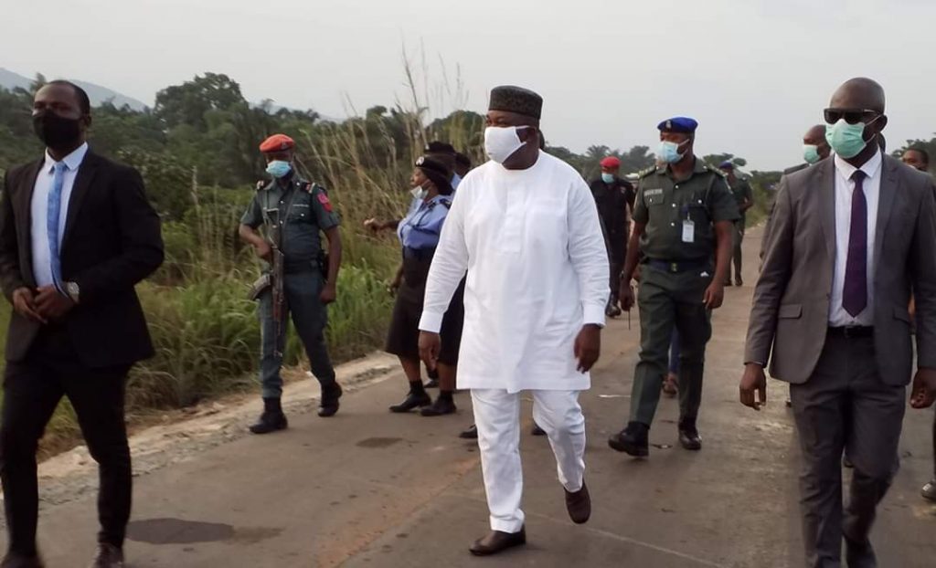 Governor Ifeanyi Ugwuanyi of Enugu State, this evening, visited the Enugu-Abia boundary, along Enugu-Port Harcourt Expressway, where he charged the security agencies on duty, the Awgu Local Government Council Chairman, Hon. Pedro Nwankwo and his security team to enforce total restrictions, in the overall public interest.