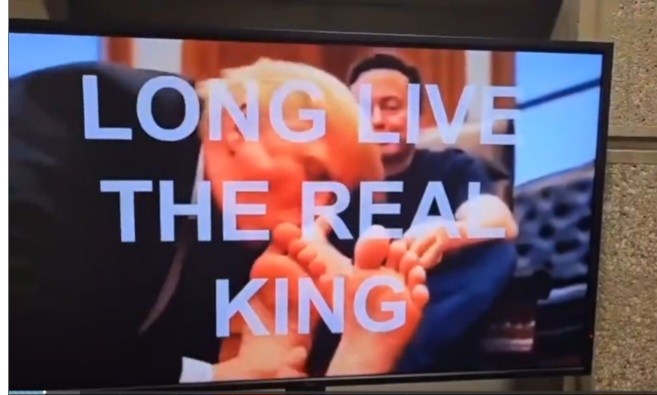 The video featured the words “Long Live the Real King” in front of AI-generated footage of President Trump kissing Elon Musk’s feet.