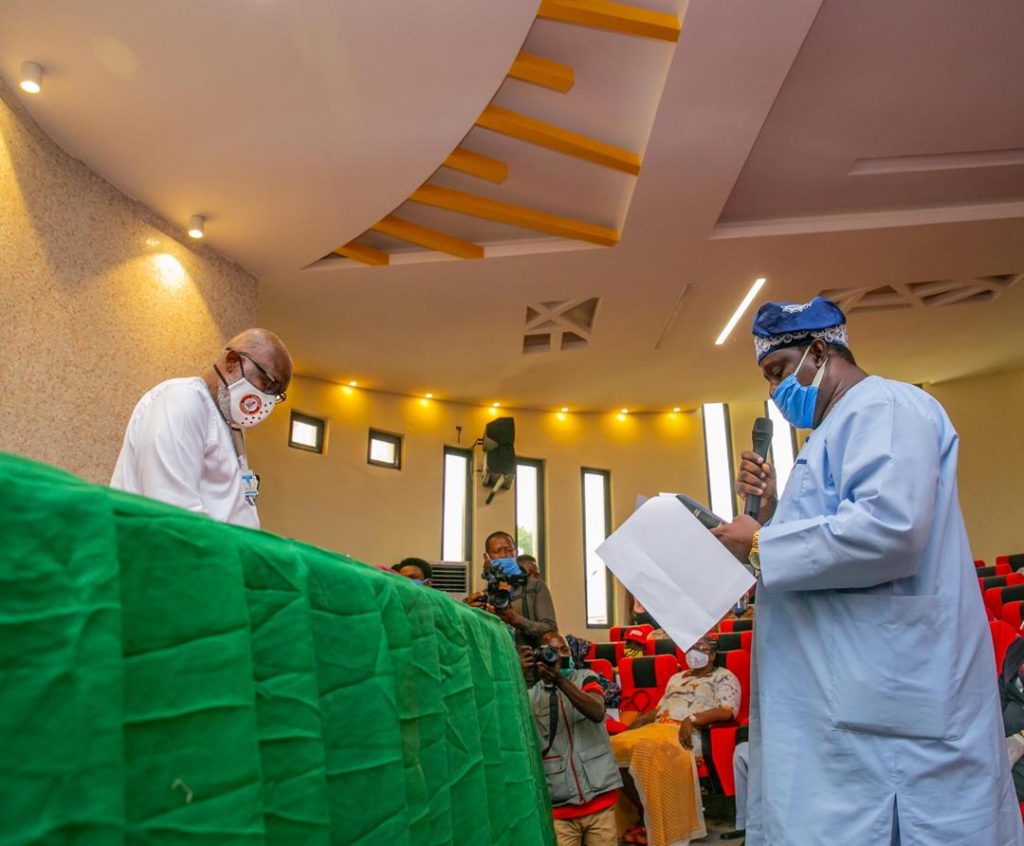Governor Oluwarotimi Akeredolu has sworn in Mr Tayo Oluwatuyi as Secretary to Ondo state government, SSG.
