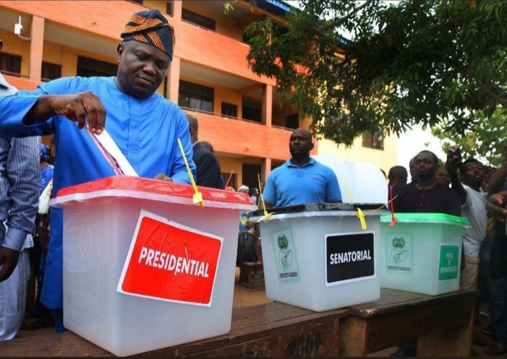 Outgoing Lagos State Gov Ambode votes with a strong face…