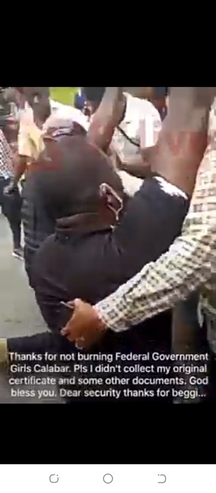 Chief Security Officer to Cross River Governor, Mark Anyongo knees down to beg hoodlums not to burn Federal Government Girls College Calabar #MoodOfTheNation