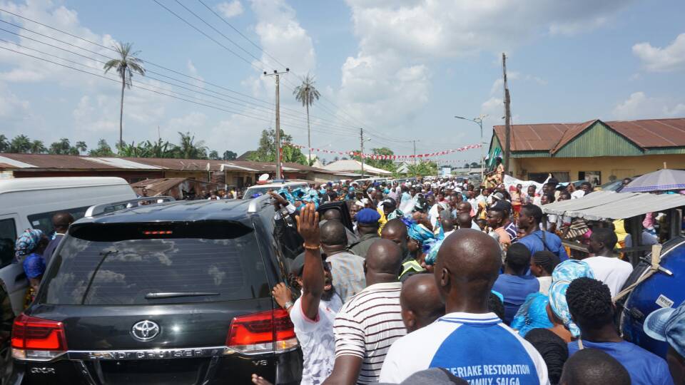 Gov Dickson conferred with the chieftaincy title, ‘The Okute of Ijaw nation’ meaning Rock of the Ijaw nation. Event took place today in Patani, hqtrs of the Kabowei Kingdom. Given for his efforts at uniting the Ijaw people and advancing the Ijaw development agenda.