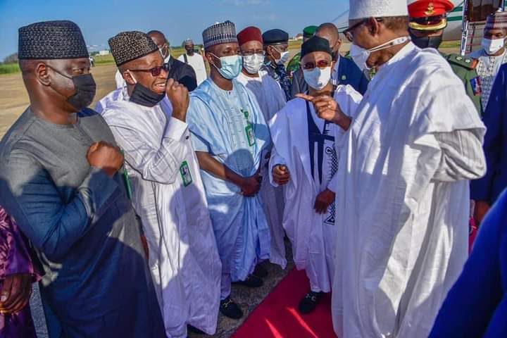 Malam Nasir El-Rufai has led senior officials of the Kaduna State Government to welcome President Muhammadu Buhari to Kaduna.
