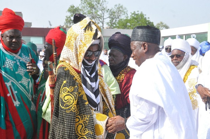 The Moment Emir Sanusi Met Gov Ganduje At Eid Praying Ground