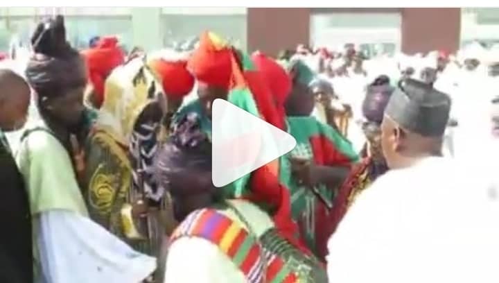 Governor Ganduje who was dressed in a white agbada with a black cap put on a bright smile as he greeted the Emir who was also dressed in colourful traditional attire. But the Emir wasn’t smiling at all.