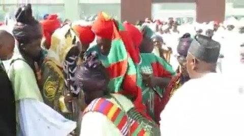 Both leaders shook hands when they met at the Eid praying ground in the ancient town of Kano for the Eid el-Fitr celebrations after the conclusion of Ramadan fast.