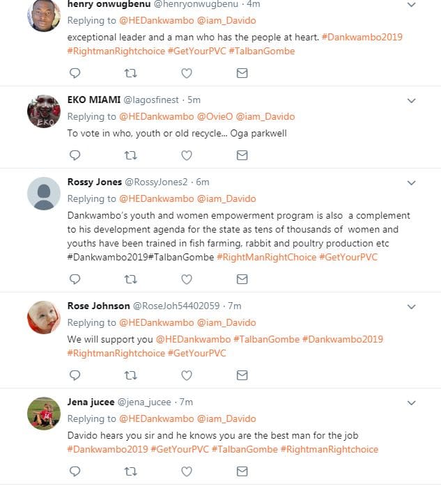 Hello @iam_Davido. My name is Ibrahim Dankwambo, Governor of Gombe state. I’m a huge fan of your amazing work and talent. I’d be glad if you can use your massive influence to work together with me in convincing our young people to go get their #PVC. Do I have your assurance?