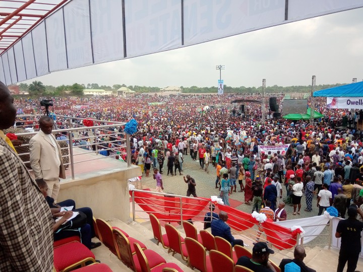 Massive crowd welcomed GOv ROchas okorocha today as he kicks off his bid to represent the people of orlu zone in the house if senate..the governor was welcomed well by the 12 local government in the orlu senatorial District…