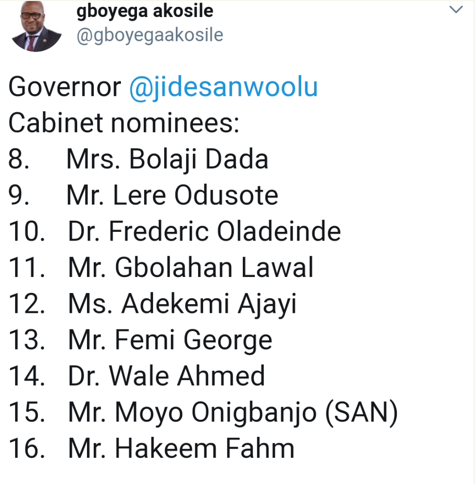 Governor Babajide Sanwo-olu has nominated 25 people to serve as commussioners in the Lagos State cabinet. The names were made public by Mr Gboyega Akosile, who is the deputy chief press secretary to the governor.