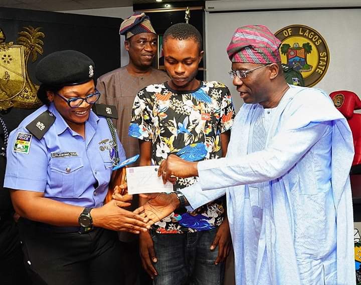 The Lagos state governor, Babajide Sanwo-Olu on Monday, October 7, honoured a divisional police officer, SP Celestine Kalu, for rescuing a Lagos resident, Friday Ojabor, who was a victim of armed robbery.
