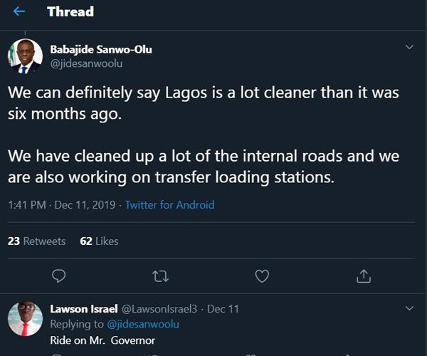 Governor Sanwo-Olu Says Lagos Is Cleaner Now. Do You Agree? (Photos)