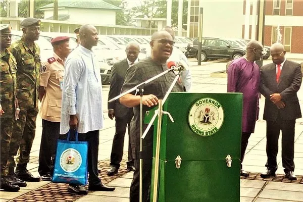 Governor Nyesom Wike of Rivers state, earlier today, donated 40 vehicles to the Rivers State security formation, code-named ‘Operation Sting’.