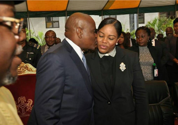 Governor Wike pictured planting a kiss on his wife, Suzette, at a function in Rivers (See Photo) - 9jaflaver