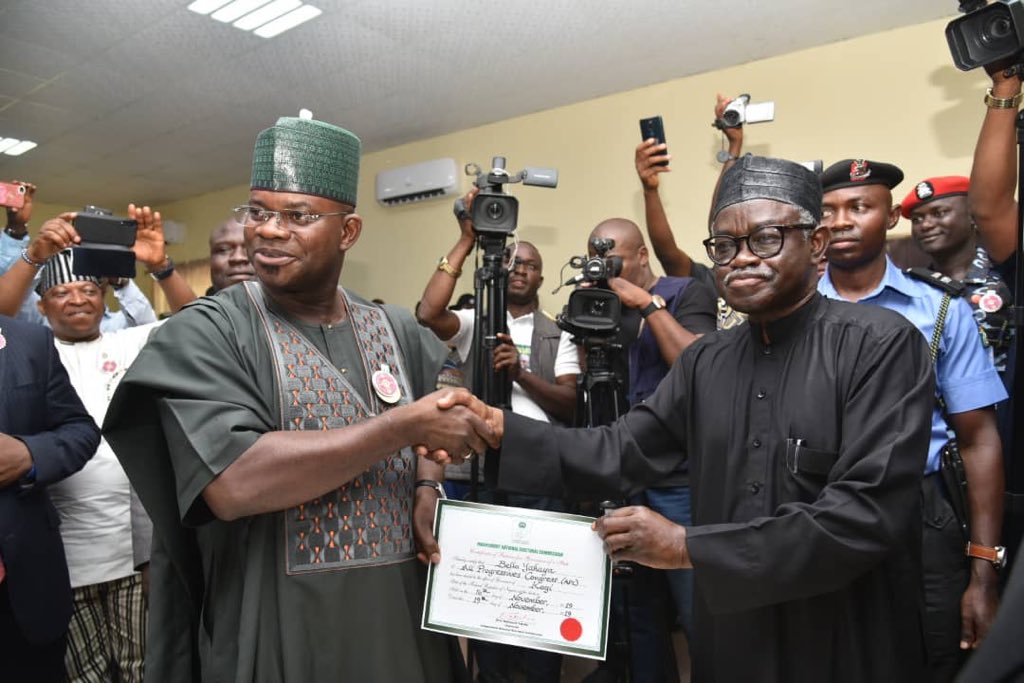 Governor Yahaya Bello Gets Certificate Of Return, Shows It Off - 9jaflaver