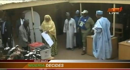 President Buhari and his wife, Aisha, moments ago, casted their votes for the governorship and state House of Assembly elections in Daura, Katsina state. The election is happening nationwide.